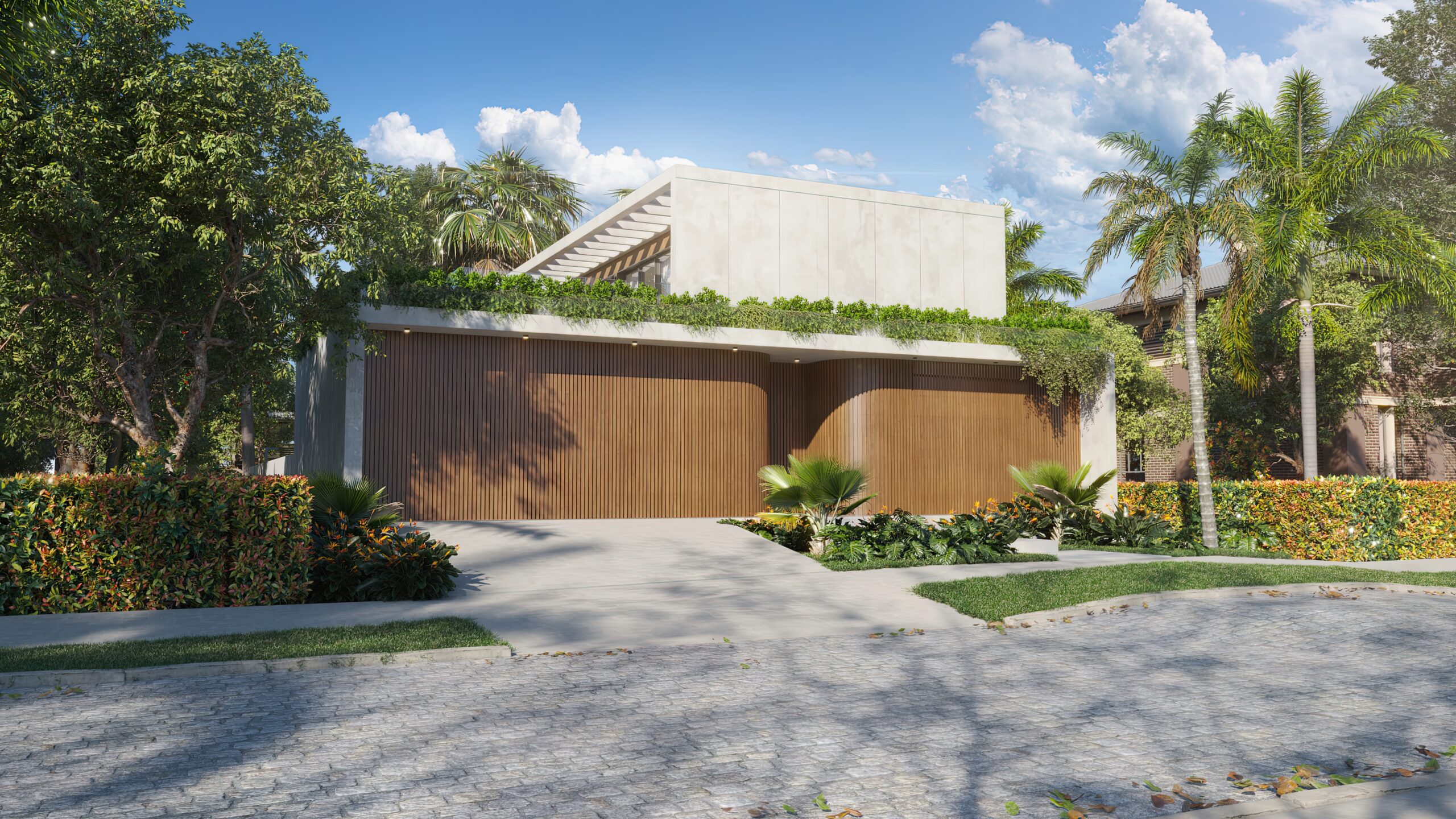 A Casa Pilotis adota uma arquitetura moderna, combinando concreto e madeira, com volumes retos em concreto e curvas em madeira, equilibrando rigor geométrico e aconchego.