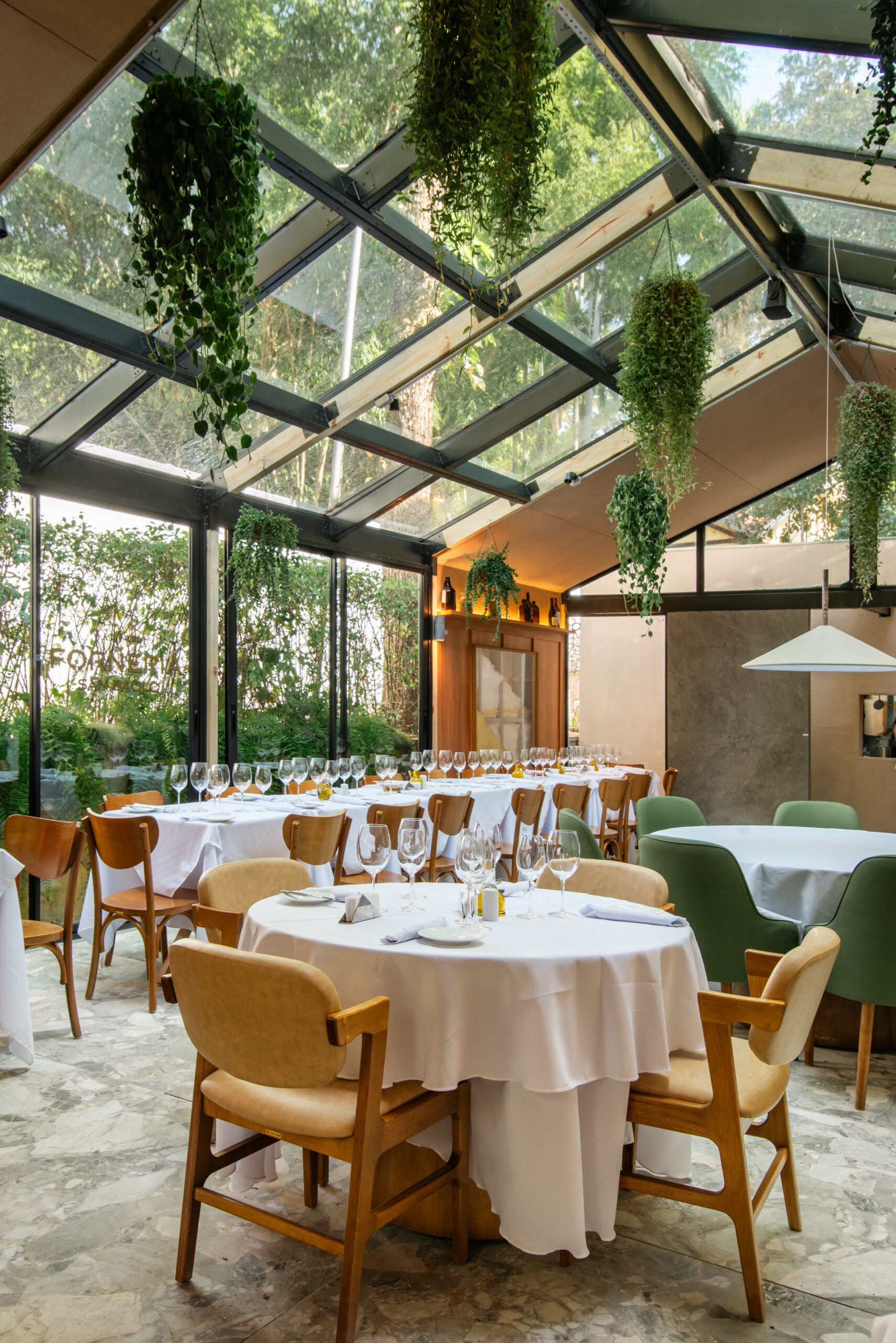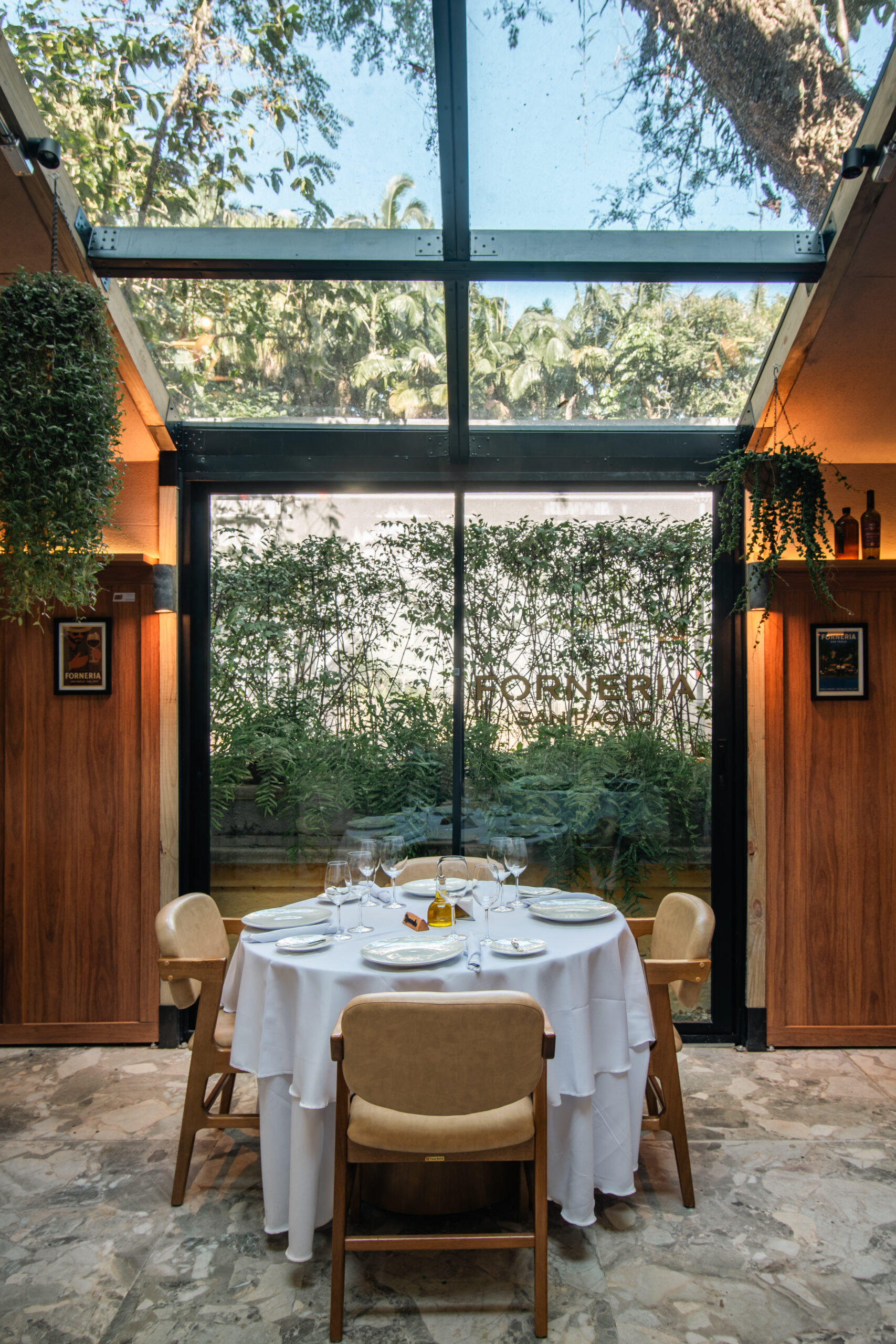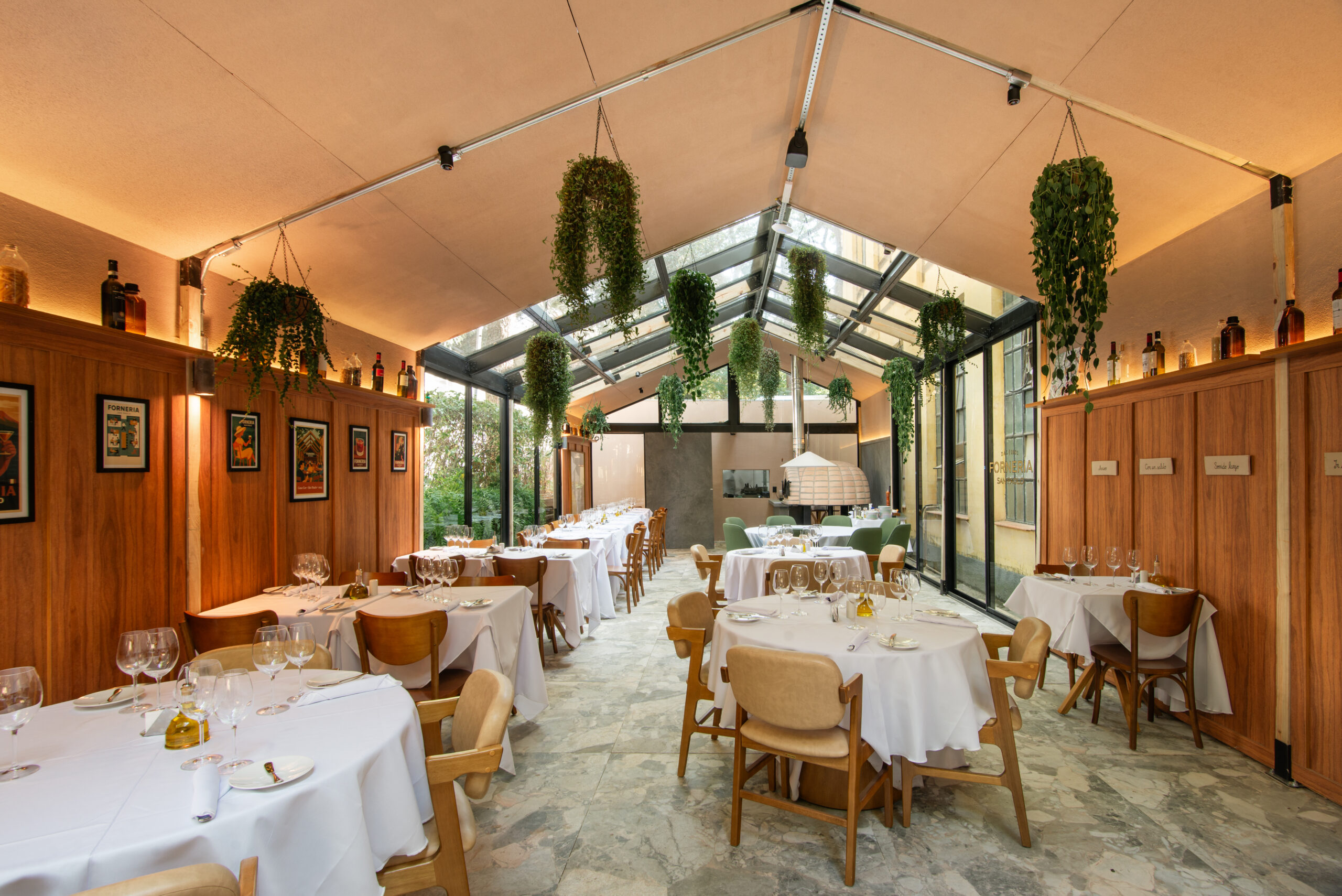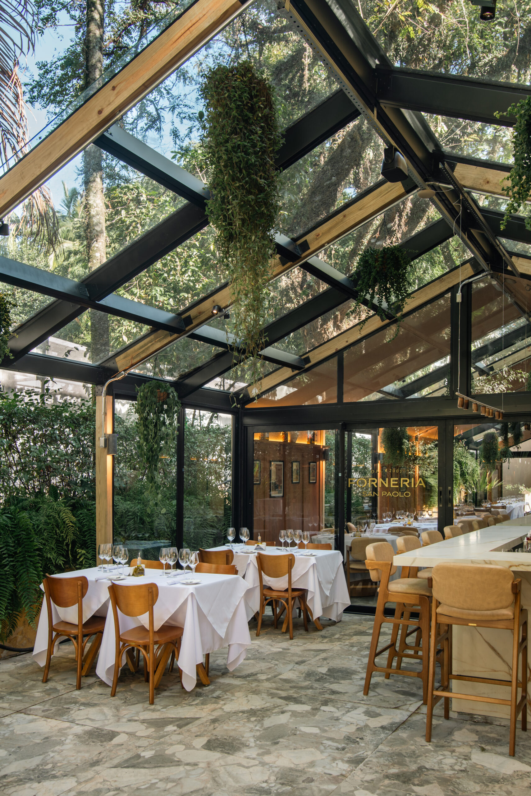 A estrutura destaca-se pelos pórticos de madeira, estrutura metálica aparente, fechamentos em vidro e revestimento externo em ACM Corten, criando uma composição leve e elegante. Internamente, as cores quentes e elementos como o forno de pizza e o bar reforçam a convivência, equilibrando tradição italiana e contemporaneidade.